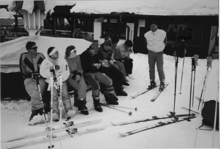Während die erfahrenen Skifahrer sich totesmutig die Piste hinunterstürzten, blickten Patrik, Thomas und Michael doch recht skeptisch und mit weichen Knien den Berg hinunter. Doch Stephen Breser entpuppte sich als hervorragender Skilehrer so, daß am Ende alle drei heil die Talstation erreichten. In den folgenden der Tagen entwickelten sich die drei Zu wahren Pistenraudies nach dem Motto – “Kein Berg zu hoch, keine Piste zu steil“.