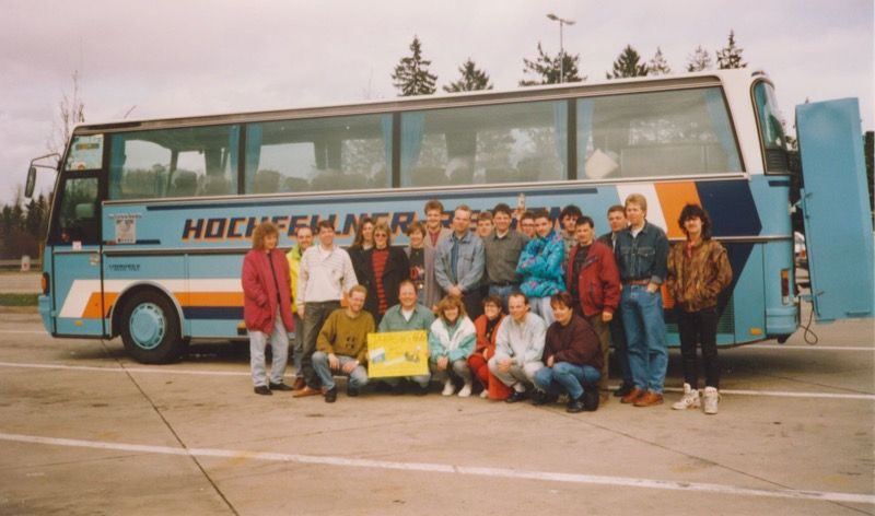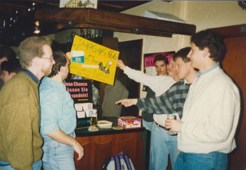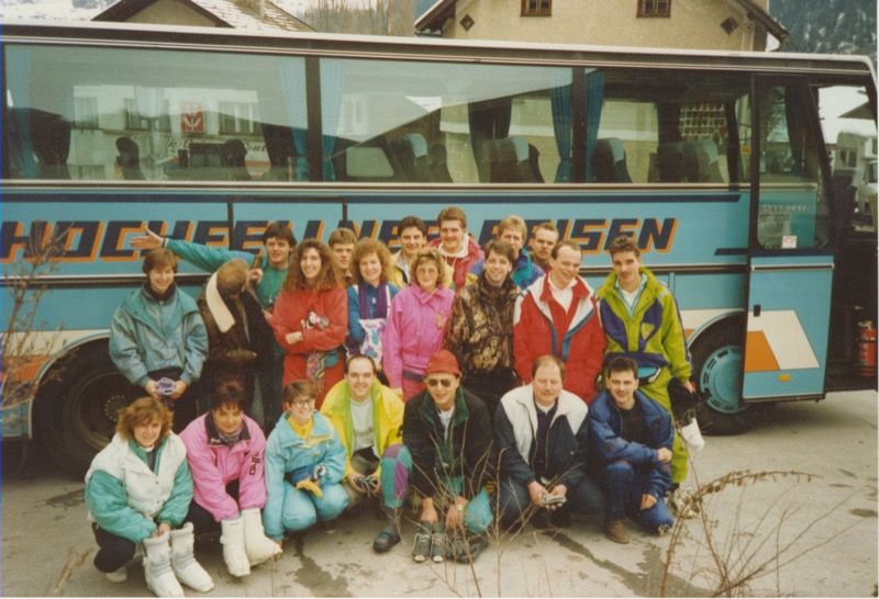 Nach den ersten Anmeldungen fand dann am 6. März “92 bei Paul's ein Treffen statt. Klärung der Zimmerfrage. Wer schläft bei wem (Für Barns : Wer schläft mit wem ?) Da das Verhältnis Männlein – Weiblein nicht 1:1 aufging (man wollte ja etwas förderliches für den Jahrgang tun - Hochzeit, Bäumchenstellen, etc.- Zitat: “ Wir fahren ja nicht aus Spaß weg.'), Zog man es dann doch vor jeweils 2 Personen gleichen Geschlechts in einem Zimmer unterzubringen.