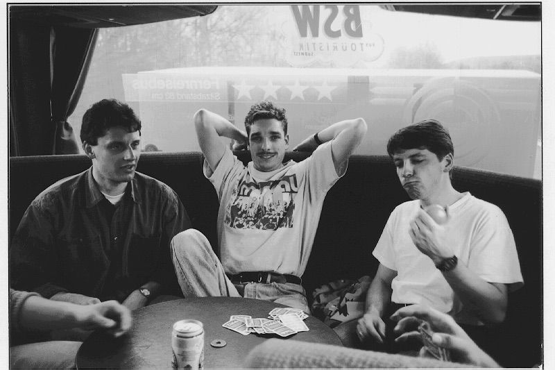 Einige vertrieben sich die Zeit neben Bier trinken mit Karten Spielen und Bier trinken, wobei sich der runde Tisch am Ende des Busses geradezu anbad. Bei lautstarken Debatten fungierte Jörg Brahm als Schiedsrichter.